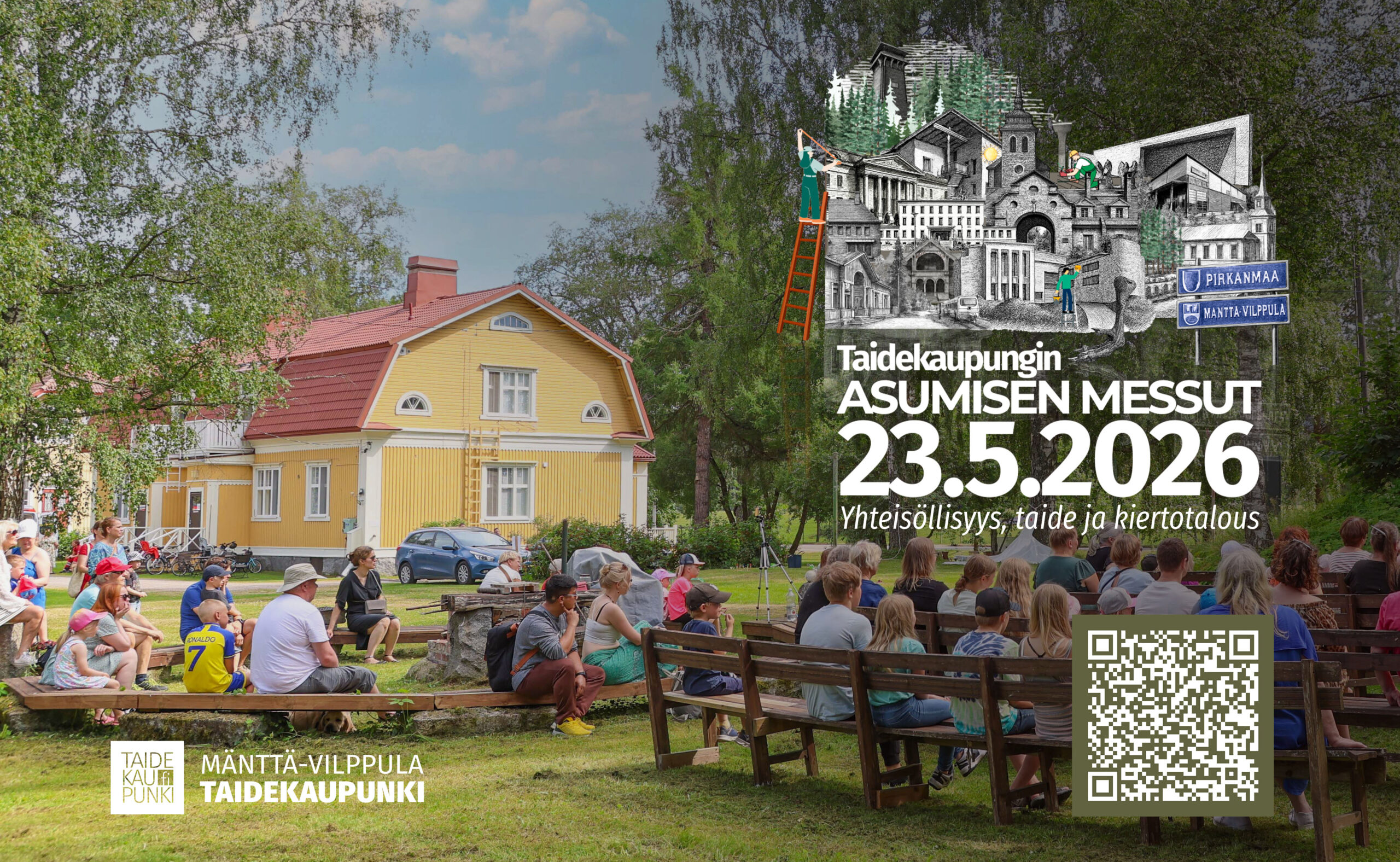 Mänttä-Vilppula on täynnä unelmaremonttikohteita, rikasta rakennettua historiaa ja kaupungilla on omaleimainen taidekaupunkibrändi, jota messut tuovat uudella tavalla esiin. Tämä ei ole perinteinen asuntomessutapahtuma, vaan Taidekaupungin avoimet ovet – paikka, jossa menneisyys ja tulevaisuus rakentavat yhdessä asumisen mestariteosta.