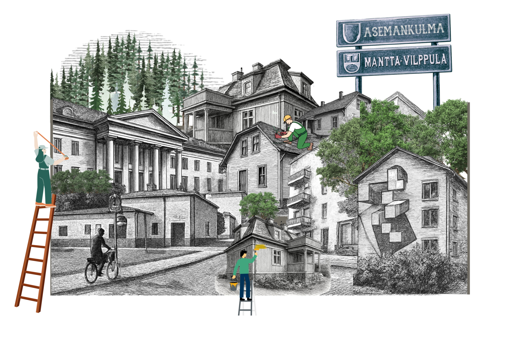 Yhteistä kaikille alueille on se, että ne kertovat Mänttä-Vilppulasta monipuolisena asuinpaikkana: täällä yhdistyvät historia ja nykyhetki, luonto ja palvelut, rauha ja kulttuuri. Jokaisella alueella on oma luonteensa ja tarinansa.