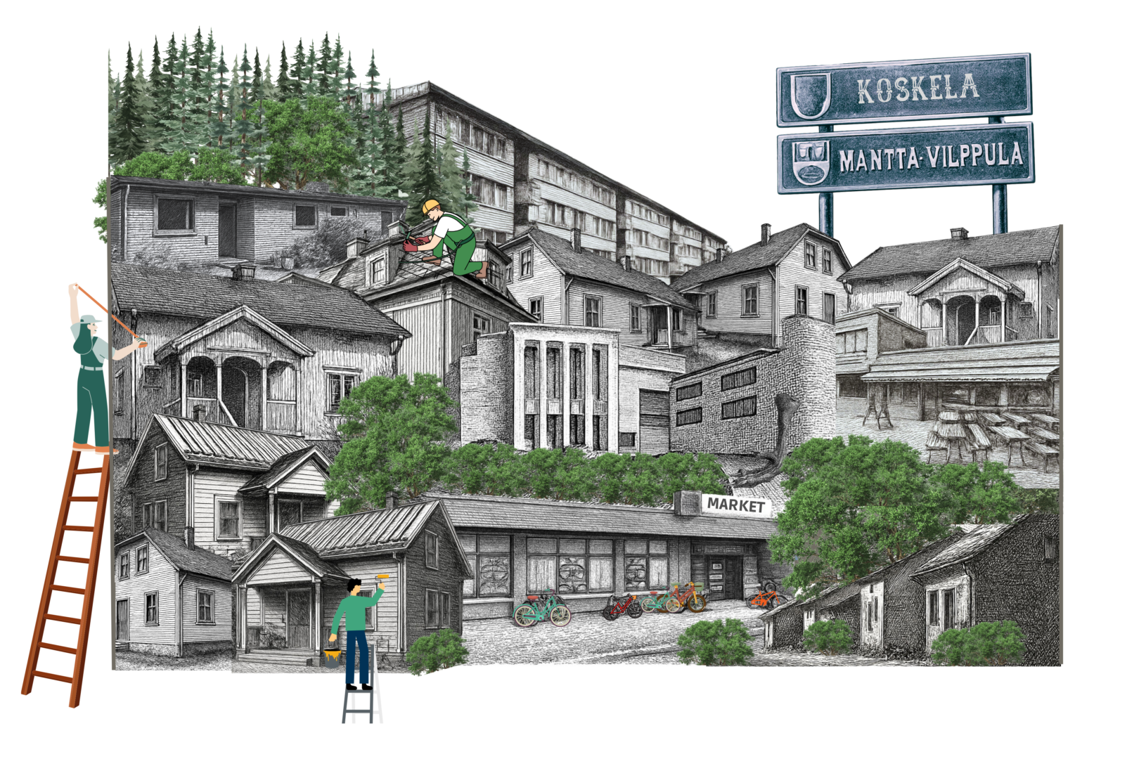 Koskela on Mäntän keskustan vanha omakotialue, jonka tontteja Serlachius-yhtiö myi 1920-luvulta alkaen. Rakentaminen alueella oli tiukasti yhtiön säätelemää, ja se oli suunnattu pääosin yhtiön työväelle ja työnjohdolle. Koskela edustaa suomalaista taajama-asumista parhaimmillaan: kerroksellinen, kodikas ja toimiva ympäristö, jossa historia ja nykypäivä lomittuvat luontevasti.