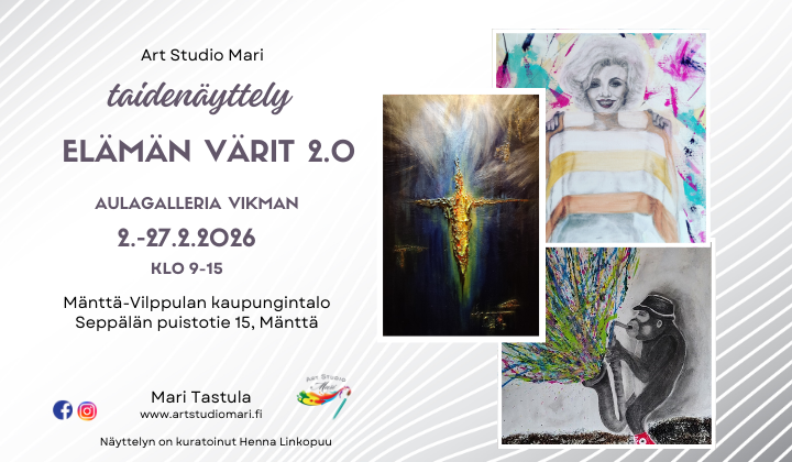 Taidenäyttely Elämän Värit 2.0 on värikylläinen ja puolen elämän mittainen kooste taiteilijan taidepolusta aina tähän päivään saakka. Näyttelyssä on esillä erilaisia luontoaiheisia teoksia, abstrakteja teoksia sekä oikean elämän henkilöistä ja fiktiivisistä henkilöistä tehtyjä teoksia. Tämä taidenäyttely täytyy nähdä ja kokea itse.